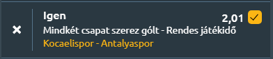 - Törökországba utazunk, ahol a középmezőnyben stabilan álló Kocaelispor fogadja a nehéz időszakot élő Antalyasport. A Kocaelispor biztatóan tért vissza az élvonalba, a kezdeti hétmeccses nyeretlen sorozat után jelentős formajavulást mutatott, az ezt követő kilenc bajnokin öt győzelmet aratott, és ezzel a tabella felső felébe kapaszkodott. Az utóbbi időszakban ugyan visszafogottabb lett a lendület, az utolsó négy bajnokiból három döntetlennel zárult. Hazai pályán kifejezetten stabil a csapat, hét bajnoki óta veretlen, ebből négy győzelem, és az első fordulós vereség óta nem kapott ki a hazai stadionban. Az Antalyaspor újra egy ötmeccses nyeretlen sorozatban van a ligában, két döntetlennel és három vereséggel, legutóbb súlyos, 4–1-es hazai vereséget szenvedett a Galatasaraytól. Bár a Török Kupában nyerni tudott, a bajnokságban mindössze 15 ponttal egy pontra van a kiesőzónától. Ugyanakkor idegenben mutat némi ellenállást, legutóbbi négy vendégfellépésén veretlen maradt, és a bajnoki győzelmei közül hármat is idegenben szerezte. A két csapat legutóbbi élvonalbeli találkozója 2009-ben 1–0-s hazai sikert hozott, míg a legfrissebb kupapárharcot az Antalyaspor nyerte 3–1-re. A Kocaelispor hazai stabilitása és az Antalyaspor idegenbeli ellenállása kiegyenlített képet vetít előre, így egy szoros, kis különbségeken múló mérkőzés várható, ahol a döntetlen reális végkimenetelnek tűnik. Mindkét csapat betalál majd!