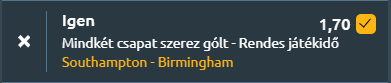 - A Southampton a Premier League-beli gyenge idényt követően a Championshipben már 24 pontnál tart, köszönhetően interim vezetőedzőjük, Tonda Eckert remek nyitányának, aki öt meccséből négyet megnyert. Ugyanakkor a múlt hétvégén 3-2-re kikaptak Millwall otthonában, miután Adam Armstrong és Finn Azaz góljaira is csak két találatot tudtak válaszolni. Armstrong ismét formába lendült, a legutóbbi négy mérkőzésén háromszor volt eredményes, míg az előző hazai meccseken Eckert irányítása alatt összesen hat gólt szereztek két találkozón. A Birmingham City a legutóbbi hat másodosztályú összecsapásából csak egyszer kapott ki, a legutóbbi négy hazai győzelmével pedig a hatodik hely közelébe került. Paik Seung-ho és Demarai Gray két góllal vitték előnyhöz a csapatot a Watford elleni hétfői mérkőzésen, miközben Marvin Ducksch és Jay Stansfield támadópárosa megbízhatóan hozza az eredményeket idegenben is. A csapatok jó formája és támadószekciója alapján várható, hogy a Southampton és a Birmingham is betalál St Mary’s-ben, így reális esély mutatkozik a mindkét csapattól gólt hozó mérkőzésre.