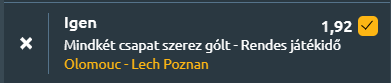 - Ezen a KL-meccsen is mindkét csapat számára fontos a pontszerzés, ami pedig gólokban gazdag mérkőzést ígér. A Sigma Olomouc legutóbb 5-0-s vereséget szenvedett Zlín ellen, és jelenleg a 22. helyen áll a tabellán. Az idényben 2 győzelmet, 2 vereséget és 1 döntetlent jegyez, átlagosan 1,2 gólt szerezve és 1,4-et kapva, az utolsó öt mérkőzésükön viszont 1 győzelmet és 4 vereséget arattak, 0,6 gólos átlaggal és 2,0 kapott góllal. Lech Poznań az előző fordulóban 1-1-es döntetlent játszott az FSV Mainz 05 ellen, a tabellán a 20. helyen áll, az idényben 2 győzelmet, 2 vereséget és 1 döntetlent ért el, 2,0 gólos átlaggal és 1,4 kapott góllal. Az utolsó öt mérkőzésükön 2 győzelem, 3 döntetlen szerepel, 1,4 gólos átlaggal és 0,6 kapott góllal. Mindkét csapat kiegyensúlyozott támadójátékkal rendelkezik, és az elmúlt mérkőzések alapján képesek betalálni!