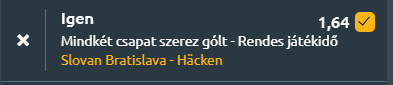 - A Konferencia Liga utolsó fordulójában a Häcken a Slovan Bratislava otthonában lép pályára a pontszerzés reményében. Csakhogy a szlovákok számára is kellenek még a pontok! A Slovan Bratislava legutóbb 3-2-re győzött Žilina ellen, jelenleg a 31. helyen áll a tabellán. Az idényben 1 győzelmet, 4 vereséget és 0 döntetlent jegyez, az utolsó öt mérkőzésükön 2 győzelem és 3 vereség szerepel, 1,4 gólos átlaggal és 2,0 kapott góllal. Häcken legutóbb 1-1-es döntetlent játszott az AEK Larnaca ellen, a tabellán a 29. helyen áll. Az idényben 1 győzelmet, 3 vereséget és 3 döntetlent ért el, 1,71 gólos átlaggal és 1,43 kapott góllal. Mindkét csapatnál a legutóbbi tíz mérkőzésen gyakori volt, hogy mindkét fél betalált! A Slovan Bratislava-nál hétszer, a Häcken-nél nyolcszor, ami a támadó stílust bizonyítja, és a védekezés gyengeségét is jelzi. Az adatok alapján mindkét csapattól várható gól a mérkőzésen, így egy aktív, eseménydús összecsapásra lehet számítani!