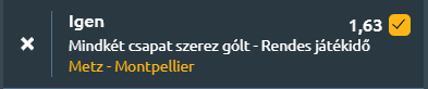 - Szintén a gall kupasorozatban vagyunk, ahol a Metz és a Montpellier csap össze a Stade Saint-Symphorienben, mindkét gárda a győzelemért fut ki a pályára. A Metz eddig egy mérkőzést játszott a kupában, három szerzett góllal és kapott gól nélkül. Legutóbbi mérkőzésükön 1–1-es döntetlent értek el a Lorient ellen. Az elmúlt öt találkozójuk mérlege egy győzelem, három vereség és egy döntetlen, ezeken a mérkőzéseken átlagosan 1,4 gólt szereztek, miközben 1,6 gólt kaptak. A Montpellier elleni legutóbbi öt egymás elleni mérkőzésen nem tudtak nyerni, két döntetlen és három vereség szerepel a nevük mellett. A csapat közelmúltbeli eredményei és gólszámai azt mutatják, hogy rendszeresen betalálnak, így erre ma is lehet számítani. A Montpellier a sorozatban eddig három mérkőzést játszott, mindhármat megnyerték, mérkőzésenként 1,67 gólos átlaggal, és eddig még nem kaptak gólt. Legutóbbi mérkőzésükön azonban 3–1-es vereséget szenvedtek a Dunkerque ellen. Az elmúlt öt találkozójukon két győzelem, két vereség és egy döntetlen a mérlegük, ezeken a meccseken átlagosan egy gólt szereztek és egyet kaptak. A Metz elleni közvetlen párharcokban kifejezetten eredményesek voltak, az utolsó öt egymás elleni mérkőzésen három győzelmet és két döntetlent értek el, miközben átlagosan két gólt szereztek meccsenként. Összesítve tehát, a Metz a közelmúltban és az egymás elleni mérkőzéseken is rendszeresen betalált, miközben gyakran kap gólt, a Montpellier pedig a közvetlen párharcokban magas gólátlagot produkált, és az elmúlt mérkőzésein is szerzett találatokat, így mindkét oldalról várhatunk gólt!