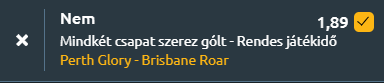 - A helyszín Ausztrália, ahol az élvonalbeli bajnokság 13. fordulójában ma a Perth Glory hazai pályán fogadja a Brisbane Roart, és mindkét csapat számára fontos lenne a pontszerzés a tabellán való előrelépés érdekében, de csak az egyik gárdától számíthatunk gólra. Lássuk, miért! A Perth Glory a legutóbbi 3-0-s hazai győzelmével lendületet kapott, bár az előző öt meccsükön két győzelem és három vereség a mérlegük, átlagosan 1,6 gólt szerezve és 1,2-t kapva. A szezonban eddig öt győzelmet, egy döntetlent és hat vereséget jegyeznek, és bár hazai formájuk vegyes, a legutóbbi siker és a kapott gól nélküli teljesítmény bizakodásra ad okot. A Brisbane Roar nagyon rossz sorozatban van! Az utóbbi három bajnokiját elveszítette, legutóbb 0-2-re kaptak ki Auckland ellen, és az elmúlt öt találkozójukon csupán egy győzelmet arattak, miközben 0,6 gólt átlagoltak és 1,8-at kaptak. Az utóbbi három meccsükön nem találtak be, és bár idegenben nyertek már 3-1-re a Perth ellen a múlt szezonban, jelenleg támadó formájuk rendkívül bizonytalan. A jelenlegi statisztikák alapján a Perth javuló védekezése és alakuló támadójátéka, valamint a Brisbane borzalmasan gyenge támadási hatékonysága miatt nagy valószínűséggel csak az egyik csapat fog betalálni ezen az összecsapáson.