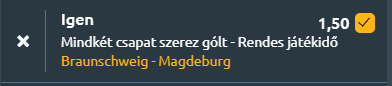 - Két mérkőzés erejéig Németországba látogatunk, ahol a Bundesliga 2 mai játéknapján az Eintracht Braunschweig hazai pályán fogadja a FC Magdeburgot egy olyan meccsen, ahol mindkét fél támadóformája felívelőben van. Nézzük is meg! Az Eintracht Braunschweig az utóbbi öt meccsén három győzelmet, egy döntetlent és egy vereséget aratott, átlagosan 1,6 gólt szerezve és 1,0-t kapva. Hazai meccseiken rendre gólgazdag találkozókat játszanak, az utolsó 17 otthoni mérkőzésük mindegyikén több mint 1,5 gól született! A csapat az idei szezonban 6 győzelmet, 2 döntetlent és 9 vereséget jegyez, átlagosan 1,2 gólt szerezve és 1,7-et kapva, és a második félidőben rendre betalálnak. Az FC Magdeburg az utóbbi öt meccsén szintén három győzelmet, egy döntetlent és egy vereséget könyvelhetett el, átlagosan 2,4 gólt szerezve és 1,6-ot kapva. A szezonban 5 győzelem, 2 döntetlen és 10 vereség a mérlegük, átlagosan 1,2 gólt szereznek és 1,7-et kapnak meccsenként, és az utóbbi hetekben támadóformájuk visszatért, így veszélyesek idegenben is. A két csapat korábbi összecsapásai kiegyenlítettek, az utóbbi öt meccsen két-két győzelem és egy döntetlen született, átlagosan több mint két gól meccsenként, ami a támadóerő és a védelmi sebezhetőség kombinációját tükrözi. Az aktuális formák és a támadóerő alapján várható, hogy mindkét csapat betalál a mai meccsen.