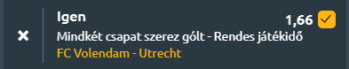 - Hollandiába utazunk, ahol az Eredivisie 19. fordulójában az FC Volendam a Kras Stadionban fogadja az FC Utrechet. A Volendam a feljutást követően nehéz időszakot él, öt egymást követő vereséggel indította az évet, legutóbb 1-0-ra kapott ki az AZ Alkmaartól, ám a holland kupában továbbjutott, és ezzel talán némi önbizalomra tettek szert. A hazai pálya előnye és a kupában szerzett önbizalom reményt ad a csapatnak, hogy véget vessen a kétmeccses vereségsorozatnak, miközben a bennmaradás a legfőbb céljuk. Az Utrecht viszont a Holland Kupából esett ki a Twente elleni 2-1-es vereséggel, ezzel sorozatban két vereséget szenvedtek el először október óta, és az elmúlt nyolc mérkőzésükből csak egyet nyertek. A vendégek idegenbeli szereplései is gyengén alakulnak, mindössze egy győzelmet arattak nyolc bajnoki során, és mindössze három pont választja el őket az utolsó európai helytől, ami miatt minden pont fontos számukra. Két sokat hibázó, de erős győzelmi kényszerben lévő csapat találkozik ma, amelynek a végeredménye könnyedén gólok lehetnek, mindkét oldalon!