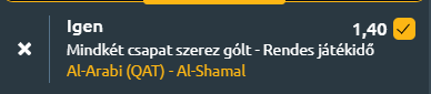 - Doha szívében, a Grand Hamad Stadionban csap össze a Stars League két élcsapata, ahol az ötödik helyen álló Al-Arabi SC a dobogós Al Shamal SC-t fogadja egy gólokban bővelkedőnek ígérkező találkozón. Lássuk a számokat! Az Al-Arabi SC jelenleg az ötödik pozíciót foglalja el, mérlege 7 győzelem, 2 döntetlen és 5 vereség, miközben meccsenként átlagosan 2 gólt szerez, de 2,07-et be is kap. Legutóbb 4–2-re nyert az Umm-Salal ellen, az elmúlt öt meccsén pedig három győzelem mellett 2,6 rúgott és 1,4 kapott gólos átlagot hozott. Az Al Shamal SC a harmadik helyről érkezik, 7 győzelemmel, 4 döntetlennel és 3 vereséggel, 1,86 szerzett és 1,21 kapott gólos mutatóval. Legutóbb gól nélküli döntetlent játszott az Al Sailiya ellen, az utolsó öt találkozóján 1,4 rúgott és 1,4 kapott gól volt az átlaga. Az egymás elleni mérleg az Al Shamal felé billen: az utolsó öt párharcból kettőt megnyert, egyet elveszített, két döntetlen mellett, a legutóbbi meccsen pedig 3–2-re győzött hazai pályán, miközben ezekben a meccsekben 1,8 gólt átlagolt az Al-Arabi 1,2-jével szemben. Jó kis támadó stílusú csapatok ezek, mind az idénybeli, mind a közelmúltbeli meccseiken magas a rúgott és kapott gólátlag, amit az egymás elleni találkozók gólgazdag képe is alátámaszt. Ma is mindkét oldalról várható gól.
