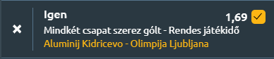 - A szlovén élvonal mai játéknapján Az Aluminj fogadja az Olimpija csapatát, ahol a tabella középmezőnyének és élbolyának találkozása ígér kiegyenlített, mégis gólokban bővelkedő mérkőzést. Lássuk a számokat! Az Aluminij a hetedik helyről várja az összecsapást, legutóbb 2–1-re kapott ki a Radomljétől, és a szezonban eddig hét győzelem, nyolc vereség és négy döntetlen mellett 1,47 gólt szerzett és 1,79-et kapott meccsenként. Az utolsó öt találkozón két győzelem, két vereség és egy döntetlen jött össze, ezeken 2,4 gólos támadójáték és 1,8-as kapott gólátlag jellemezte. Az Olimpija a negyedik pozícióból érkezik, legutóbb 1–0-ra verte a Murát, a bajnokságban nyolc győzelmet, hét vereséget és négy döntetlent jegyez, 1,26 rúgott és 1,21 kapott gólos mutatóval. A közelmúlt formája stabilabb, az elmúlt öt meccsen három győzelem, egy vereség és egy döntetlen mellett 1,2 gólt szerzett és mindössze 0,8-at engedett. A legutóbbi találkozó 1–1-es döntetlent hozott. Az Aluminij és az Olimpija is rendszeresen betalál a bajnokságban, miközben mindkét oldalon stabilan jelen vannak a kapott gólok is.