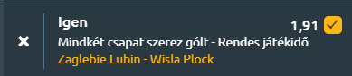 - Még mindig Lengyelországban, de már az Ekstraklasában, a Zagłębie Lubin a Wisła Płockot fogadja, és kiegyensúlyozott, izgalmas összecsapásra van kilátás. A Zagłębie Lubin jelenleg a 2. helyen áll, az utolsó öt meccsén 3 győzelem, 1 vereség és 1 döntetlen, átlag 1,0–0,6 a gólarány. Legutóbb 0-2-re győztek a Lechia Gdańsk ellen. A szezonban 9 győzelem, 5 vereség és 8 döntetlen, átlag 1,59–1,23 gól. Az egymás elleni legutóbbi találkozón 2-1-re kaptak ki a Wisła Płocktól. A Wisła Płock a 6. helyen áll, az utóbbi öt meccsén 1 győzelem, 3 vereség és 1 döntetlen, átlag 0,8–1,4 a gólarány. Legutóbb 2-1-re kaptak ki a Legia Warszawa ellen. A szezonban 8 győzelem, 5 vereség és 9 döntetlen, átlag 1,09–0,82 gól. Mindkét csapat az elmúlt tíz meccsükön rendszeresen alacsonyabb gólátlagot produkált, de az egymás elleni statisztikák és a jelenlegi formák kiegyensúlyozott, támadásra nyitott mérkőzést sejtetnek. A mérkőzésen mindkét csapat gólt szerezhet, mert az utóbbi időszakban rendszeresen betaláltak és várhatóan ma is támadó felfogásban fognak futballozni.