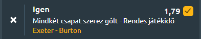 - Szintén a League One mai találkozóján kiesési zónától menekülő csapatok csapnak össze, amikor az Exeter City a Burton Albiont fogadja. Az Exeter mindössze öt pontra van a veszélyzónától, miközben Dan Green várhatóan negyedszer is megbízottként irányít. A Bolton elleni hazai 5–1-es vereség azonban komoly árnyékot vet a munkájára, különösen úgy, hogy a csapat a 60. perc után négy gólt kapott. Green korábban döntetlenre vezette az együttest a tabellán előrébb álló Wycombe és Peterborough ellen, de a hétmeccses nyeretlen sorozat intő jel. Az elmúlt hat találkozón ugyan kétszer is kapott gól nélkül zárt a gárda, mégis 13-szor kapitulált ebben az időszakban. A Burton ezzel szemben hét pontot gyűjtött három mérkőzésen, amivel három pontra eltávolodott a kiesőhelyektől, bár a Wycombe elleni 3–0-s vereség megtörte a lendületet. Az Exeter hosszú nyeretlen szériája és a Burton ingadozó, de gólszerzésre képes formája miatt várható a gólváltás a mai mérkőzésen!