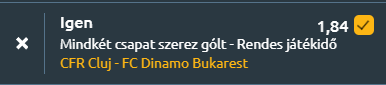 - Kiemelt rangadó várja a szurkolókat Kolozsváron, ahol a CFR Cluj és a Dinamo Bucureşti egymás ellen csap össze a Stadionul Dr. Constantin Radulescu gyepén. A CFR Cluj legutóbb 1–1-et játszott az Universitatea Craiovával, míg a Dinamo Bukarest 1–0-ra verte a Metalul Buzaut. A két csapat közös múltja is szoros, az utolsó öt egymás elleni meccsből kettőt-kettőt nyertek, egy pedig döntetlen lett, bár a legutóbbi találkozón a Dinamo Bukarest otthon 2–1-re felülmúlta a kolozsváriakat. A CFR Cluj jelenleg az 5., a Dinamo Bukarest a 4. helyen áll. A hazaiak szezonbeli mérlege 14 győzelem, 7 vereség és 8 döntetlen, 1,62-es rúgott és 1,38-as kapott gólátlaggal. A vendégek 14 győzelemnél, 5 vereségnél és 10 döntetlennél tartanak, 1,45-ös gólátlaggal és mindössze 0,9-es kapott gólátlaggal. A formát tekintve a CFR Cluj az utóbbi öt meccsén veretlen maradt három győzelemmel és két döntetlennel, 1,4-es rúgott és 0,8-as kapott gólátlaggal. A Dinamo Bukarest három győzelemmel és két vereséggel érkezik, 1,0-s gólátlaggal és 0,6-os kapott gólmutatóval. A kiegyenlített erőviszonyok és a stabil formák alapján feszült, taktikus mérkőzés várható, ahol egyik fél sem engedheti meg magának a hibát. Mindkét oldalon stabil a támadóátlag, miközben egyik védelem sem zár teljesen hermetikusan, így aztán van esély a gólváltásra!