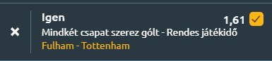 - A londoni derbin a Fulham a nyeretlen sorozatát megszakítani képtelen Tottenhamet fogadja a Premier League-ben. A Spurs 2026-ban kilenc bajnokin sem tudott nyerni, legutóbb 4–1-es pofonba szaladt bele az Arsenal ellen, így a tabella 16. helyén áll, és komoly veszélyben van élvonalbeli státusza. Igor Tudor bemutatkozása sem hozott azonnali javulást, bár Randal Kolo Muani még egyenlített, a második félidőben szétesett a csapat. Idegenben ugyanakkor hatékonyabb a londoni együttes, a megszerzett 29 pontból 19-et rivális pályán gyűjtött be, és az utóbbi négy vendégfellépéséből három esetben is két gólt is szerzett. A Fulham a 10. helyről várja az összecsapást, miután a 27. fordulóban 3–1-re legyőzte a Sunderlandet Raul Jimenez duplájával és Alex Iwobi találatával. A hazaiak ezzel hárommeccses vereségszériát zártak le, és újra kézbe vették a felsőházért folyó harcot. Védekezésük viszont sebezhető, hiszen az utóbbi 11 meccsük egyikén sem úszták meg kapott gól nélkül, még úgy sem, hogy a Craven Cottage-ban december vége és január vége között négy győzelmet és egy döntetlent hoztak. A Fulham 11 találkozó óta nem hozott le kapott gól nélküli meccset, miközben a Tottenham idegenben rendszeresen betalál, így jó esélye van a gólváltásnak!