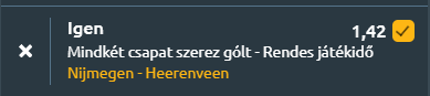 - Még mindig a holland élvonal, ahol a Heerenveen és az NEC csap össze és mindkét csapat negyedik egymást követő győzelmét szerezné meg az Eredivisie 28. fordulójában. Az NEC az elmúlt időszakban remek formát mutatott, a KNVB Bekerben kiesette után a holland bajnokjelölt PSV Eindhoven ellen 3-2-re győztek a Philips Stadionban, Bryan Linssen duplájával. Ez a siker ideiglenesen a második helyre repítette őket a tabellán, és a vasárnapi győzelem ismét az élmezőny közelébe emelné a csapatot Feyenoord és Ajax előtt. Korábban 2024-ben mindkét alkalommal legyőzték Heerenveent, ám az idei szezonban szeretnék elkerülni a harmadik egymást követő vereséget. A Heerenveen a bajnokság második legeredményesebb hazai támadósorával rendelkezik, az elmúlt hetekben öt győzelmet arattak hat meccsből, köztük a 3-0-s győzelmet a Telstar ellen az Abe Lenstra Stadionban. Azonban védelmi hibák továbbra is előfordulnak, és a csapat csak négy idegenbeli győzelemmel rendelkezik 17 meccsből, így a Nijmegenbe látogatás komoly próbát jelent. Mindkét csapat támadójátéka erősebb, mint a védelmi stabilitása, így a gólváltásra jó esély mutatkozik!