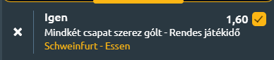 - A német 3. Ligában izgalmas összecsapásra van kilátás Schweinfurt és Rot-Weiss Essen között a Willy-Sachs-Stadionban, ahol a 20. helyezett fogadja a második helyezett csapatot. A tét nem kicsi, és a statisztikák alapján gólgazdag találkozó ígérkezik. A Schweinfurt az utolsó mérkőzésén 4-0-s vereséget szenvedett az Osnabrück ellen, míg a Rot-Weiss Essen 1-0-ra győzte le az MSV Duisburgot. Az egymás elleni mérleg is gólváltást mutat, legutóbb az Essen 2-1-re nyert a Schweinfurt otthonában. Az idény során a Schweinfurt 0,94 gólt szerzett és 2,35-öt kapott meccsenként, míg az Essen 2 gólt ért el és 1,58-at kapott. Az utolsó öt találkozó alapján a Schweinfurt 1,2 gólt szerzett és 2,4-et kapott, az Essen pedig 2,4-et ütött be és 1-et kapott. Mindezek alapján egyértelmű, hogy mindkét csapat képes betalálni, Schweinfurt ugyan gyengébben teljesít, de a védelme sérülékeny, Rot-Weiss Essen támadójátéka pedig kimagaslóan eredményes. A statisztikák és az aktuális forma együtt azt vetítik előre, hogy a mérkőzésen mindkét fél gólt szerez!
