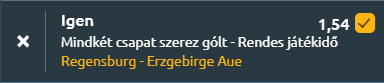 - Még mindig a német harmadik liga, ahol a 14. helyezett Jahn Regensburg a fogadja a 18. pozícióban található Erzgebirge Aue-t. A csapatok formája és az egymás elleni statisztikák egyaránt a mindkét csapat gólt szerez kimenetel mellett szólnak. A Jahn Regensburg az utolsó mérkőzésén 3-1-re kapott ki a Stuttgart II-től, míg az Erzgebirge Aue 3-5-re veszített a Hoffenheim II ellen, ami jól mutatja mindkét együttes támadópotenciálját. Az egymás elleni mérleg is gólgazdag összecsapásokat jelez, legutóbb az Aue 4-3-ra győzte le a Regensburgot otthonában, az elmúlt öt találkozóból a Regensburg kétszer-, az Aue is kétszer nyert, és egyszer döntetlen született. A Jahn Regensburg átlagosan 1,4 gólt szerzett meccsenként, az Erzgebirge Aue ugyanezt az átlagot hozta. Az idényben a Regensburg 1,39 gólt ért el és 1,55-öt kapott meccsenként, míg az Aue 1,19-et szerzett és 1,9-et kapott. Az utolsó öt mérkőzésen a Regensburg 1,8 gólt szerzett és ugyanennyit kapott, az Erzgebirge Aue pedig 1,6-ot lőtt és 3,2-t kapott. Mindezekből egyértelműen látszik, hogy mindkét csapat képes betalálni, a statisztikák és az utolsó meccsek eredményei alapján valószínű, hogy a találkozón mindkét fél eredményes lesz