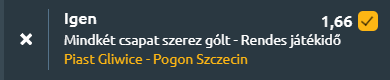 - A lódzi bajnoki forduló kiegyenlített, de gólváltásra hajló mérkőzést ígér. A LKS az utóbbi öt meccsén veretlen, két győzelemmel és három döntetlennel, miközben meccsenként 1,2 gólt szerez és 0,6-ot kap, ami stabilabb védekezést mutat. A Pogon formája hullámzóbb, az utóbbi öt meccsén három vereséget szenvedett, ugyanakkor támadásban átlagosan 1,2 gólt termel. A szezon során is közel azonos gólmutatókkal dolgoznak mindkét oldalon, 1,48 és 1,67-es átlagokkal. Az egymás elleni egyetlen korábbi meccsen a Pogon 3-0-ra nyert, ami azt mutatja, hogy képes dominálni támadásban. Mindkét csapat meccsein gyakran előfordul, hogy betalálnak, a védekezés egyik oldalon sem hibátlan. Kiegyenlített meccs várható, ahol a gólváltás tűnik a legbiztosabb tippnek.