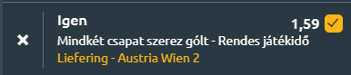 - Az osztrák másodosztályban a Liefering az Austria Wien II csapatát fogadja hazai körülmények között, ahol a hazaiak enyhe esélyesként lépnek pályára. A tabellán az Austria Wien II a hatodik, a Liefering a nyolcadik helyen áll, a szezon során a hazaiak 9 győzelem, 9 döntetlen és 7 vereség mellett 1,4 gólos támadó- és 1,52-es kapott gólátlagot hoznak, míg a vendégek 11 győzelem, 6 döntetlen és 8 vereség mellett 1,24 rúgott és 1,2 kapott gólt átlagolnak. A pillanatnyi formát tekintve egyik csapat sem meggyőző! A Liefering az utolsó öt meccséből csak egyet nyert meg, hármat elveszített, és átlagosan 1,0 gólt szerez, miközben 1,8-at kap, legutóbb gól nélküli döntetlent játszott a St. Pölten ellen. Az Austria Wien II kiegyensúlyozottabb képet mutat, két győzelem, két döntetlen és egy vereség a mérlege az utolsó öt találkozón, 1,4 rúgott és 0,8 kapott gólos átlaggal, legutóbb 1–1-et játszott az Austria Salzburg ellen. Az egymás elleni mérleg egyértelműen a Liefering fölényét mutatja, az utolsó öt meccsből hármat megnyert, kettő döntetlen lett, és a legutóbbi találkozón 2–0-ra győzött idegenben, miközben ezen párharcok során átlagosan 2,2 gólt szerzett, ellenfele pedig mindössze 0,4-et. Mindkét csapat utolsó tíz mérkőzéséből hét alkalommal két és fél gól alatt maradt az össztermés, ugyanakkor az összesített valószínűségek inkább gólváltást és háromnál több gólt vetítenek előre.