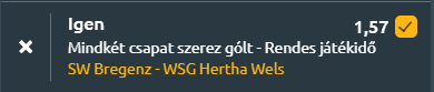 - Szintén az orsztrák kettőben az SW Bregenz hazai pályán fogadja a WSPG Wels csapatát. A tabellán a Wels áll előrébb, a 13. helyen, míg a Bregenz a 15. pozícióból várja az összecsapást. A hazaiak szezonja kifejezetten nehéz, 3 győzelem mellett 13 vereséget szenvedtek, és meccsenként több mint két gólt kapnak, ami komoly védekezési problémákat jelez. Formájuk sem biztató, az utolsó öt találkozóból hármat elveszítettek, legutóbb 3–1-re kaptak ki a Kapfenbergertől, és ebben az időszakban átlagosan 2,8 gólt kapnak mérkőzésenként. Tamadásban képesek veszélyt jelenteni, amit az is mutat, hogy az utolsó tíz meccsükből kilencen mindkét csapat betalált, így találkozóik gyakran nyílt játékot hoznak. A WSPG Wels jobb formában érkezik, az utolsó öt mérkőzéséből hármat megnyert, és támadásban kifejezetten hatékony, ebben a periódusban 2,8 gólos átlagot produkál, legutóbb pedig 4–1-re győzte le a Rapid Wien II-t. A szezon során kiegyensúlyozottabb teljesítményt nyújt, 1,36 rúgott és 1,48 kapott gólos átlaggal, miközben meccsein gyakran mindkét fél eredményes, amit az utolsó tíz találkozóból hét is alátámaszt. Az egymás elleni mérleg kevés kapaszkodót ad, hiszen legutóbb 1–1-es döntetlen született, és mindkét csapat egyformán egy-egy gólt átlagol ebben a párharcban. A hazaiak támadó stílusa, de védekezési bizonytalansága és a vendégek formában lévő támadójátéka egy nyílt, helyzetekben gazdag mérkőzést vetít előre, ahol mindkét fél könnyen betalálhat.