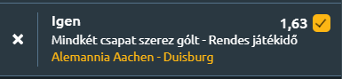- Ez pedig már a német harmadik liga, ahol az Alemannia Aachen és az MSV Duisburg találkozik. A hazaiak 7. helyen állnak 16 győzelemmel, 12 vereséggel és 6 döntetlennel, átlagosan 1,85 szerzett és 1,59 kapott góllal. A legutóbbi mérkőzésükön 3–1-re nyertek a Jahn Regensburg ellen, és az utolsó öt meccsük erős volt! 4 győzelem, 1 döntetlen, veretlen sorozat, miközben 2,4-es gólátlagot hoznak és mindössze 0,8 gólt kapnak meccsenként. A vendég MSV Duisburg a 4. helyen áll, 18 győzelemmel, 7 vereséggel és 9 döntetlennel, 1,82-es szerzett és 1,29-es kapott gólátlaggal. Formájuk szintén erős, az utolsó öt meccsből 4 győzelem és 1 vereség, legutóbb 3–1-es siker a Hoffenheim II ellen. A csapatok közvetlen párharcaiban Duisburg dominál, az utolsó öt meccsből hármat nyert, kettő döntetlen lett, Aachen pedig még nem tudott győzni, miközben a vendégek átlagban 2,4 gólt szereztek, az Aachen pedig 1,4-et. A szezonbeli mutatók alapján a két csapat hasonló támadóhatékonyságot képvisel, és a meccsek jelentős részében mindkét fél betalál, miközben az utolsó tíz mérkőzésükben gyakran mindkét oldalon gól született. Ma is várhatóan így lesz majd!