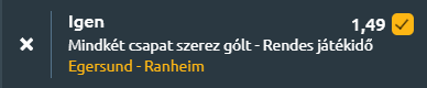 - Egy skandináv országgal nyugatabbra, az Egersund látja vendégül a Ranheim csapatát, két jó formában lévő, támadásban hatékony csapat találkozik. A legutóbbi fordulóban az Egersund 1–0-ra verte a Brynét, a Ranheim pedig fölényes, 5–1-es győzelmet aratott a Raufoss ellen. Az egymás elleni mérleg kiegyenlített, az utóbbi öt találkozóból kettőt-kettőt nyertek, egy döntetlen mellett, miközben az Egersund átlagban 2,4, a Ranheim pedig 2,0 gólt szerzett meccsenként. A tabellán a Ranheim a 4., az Egersund pedig az 5. helyen áll. A szezonstatisztikák alapján mindkét csapat hibátlan mérleggel kezdett, az Egersund két győzelemmel 2 lőtt és 0 kapott góllal, a Ranheim pedig két győzelemmel 4 lőtt és 1,5 kapott góllal érkezik. A formamutató is árulkodó, az Egersund az utóbbi öt meccsén 2 gólt szerzett és 1,2-t kapott, míg a Ranheim 3,4-es gólátlaggal és 1,6 kapott góllal érkezik. Összegezve tehát, mindkét csapat rendszeresen játszik gólgazdag mérkőzéseket, és a támadójátékuk jelenleg kifejezetten hatékony, így a gólváltás esélyei nagyok.