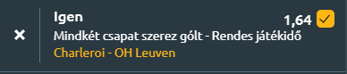 - A hazaiak jó formában vannak! Az alapszakasz gyenge zárása után mindössze 19% esélyt adtak nekik a playoff megnyerésére, mégis öt győzelemmel, három döntetlennel és csupán egy vereséggel, 17 lőtt góllal az élen végeztek! Otthon különösen meggyőzőek, utolsó négy meccsükön mindig nyertek és összesen 12 gólt szereztek. Ugyanakkor a Leuven elleni múltjuk komoly óvatosságra int, tíz egymás elleni tétmeccs óta nyeretlenek (öt döntetlen, öt vereség), ráadásul az utóbbi négyen még gólt sem tudtak szerezni ellenük! A Leuven nincs jó passzban, össze kellene már szedniük magukat! Zsinórban három vereség a mérleg, így a motivációt inkább a kiesés elkerülése adhatja! Chris Coleman csapata gyakran döntetlenezett a rájátszás során, de a gyenge védekezésük és az egyéni hibák miatt most könnyen kapitulálhatnak egy lendületes hazai csapat ellen. A Charleroi támadójátéka jelenleg annyira hatékony, hogy szinte garantálható tőlük legalább egy-két gól, miközben a Leuven sem hagyhatja válasz nélkül, különösen ha a kiesés veszélye fenyegeti. Az előzmények, a formák és a tét nélküliség miatt tehát nagyon is valószínű, hogy mindkét csapat betalál majd.