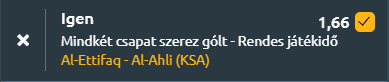 - A szaúdi Pro League mai játéknapján az Al Ettifaq hazai pályán fogadja az Al Ahli csapatát. Mindkét együttes győzelemmel hangolt a találkozóra, így izgalmas, nyílt játékra van kilátás, amelyen a statisztikák alapján mindkét fél betalálhat. Az Al Ettifaq a szezonnyitón 2–1-re győzte le az Al Kholood csapatát, ezzel jelezve, hogy támadásban erős kezdést produkált. Az összes mérkőzésüket figyelembe véve, az elmúlt öt találkozón három győzelmet, egy döntetlent és egy vereséget értek el, miközben átlagosan 1,4 gólt lőttek és 0,8-at kaptak. Az Al Ahli szintén győzelemmel indította a szezont, hiszen 1–0-ra legyőzte a NEOM SC együttesét. Az elmúlt öt összecsapásukon három győzelem és két vereség a mérlegük, miközben 1,6 gólos átlaggal szereztek találatokat, de 1,4-es átlaggal kaptak is, ami kiegyensúlyozatlan teljesítményt jelez. Az Al Ettifaq elleni korábbi egymás elleni mérkőzéseken kevesebb sikerrel jártak, hiszen az utolsó öt találkozóból csak egyet tudtak megnyerni. Mivel mindkét csapat védekezése sebezhető, várható, hogy mindkét oldalon születik gól a mérkőzésen.