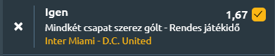 - Az MLS keleti konferenciájának élmezőnyéért küzdő Inter Miami a DC Unitedet fogadja hazai körülmények között. Az Inter Miami az elmúlt időszakban lendületbe jött, miután a héten a Leagues Cup döntőjében legyőzte a Seattle Sounderst 3-1-re, és ezzel megerősítette önbizalmát a gólok terén. A csapatnak komoly esélye van arra, hogy az MLS keleti konferenciájának élére kerüljön, hiszen három mérkőzéssel kevesebbet játszottak, és nyolc pont hátrányban vannak a listavezető Philadelphia Union mögött. A hazaiak Messi vezérletével kiváló formában vannak, aki a legutóbbi mérkőzésen is betalált, így már 19 gólnál jár 20 MLS-meccsen. A DC United számára a szezon már nem hoz MLS Cup-helyezést, így a hétvégi mérkőzésen a presztízs és a játékosok kipróbálása a cél. Az új edző, Rene Weiler irányítása alatt a csapat még veretlen, de győzelmet eddig csak egy alkalommal arattak, és az idegenbeli formájuk gyenge, az idei 15 vendégmérkőzésükből mindössze hármat nyertek meg. Bár az Inter Miami dominál a hazai mérkőzéseken és kiváló formában van, DC United támadópotenciálja, különösen Benteke és Hopkins révén – képes lehet betalálni, még ha a vendégek idegenbeli formája gyenge is. A hazai csapat erős támadóereje, valamint a vendégek igyekezete, hogy bizonyítsanak Weiler vezetése alatt, arra utal, hogy mindkét oldalon születhet gól, miközben Miami a három pont megszerzésére a legesélyesebb.