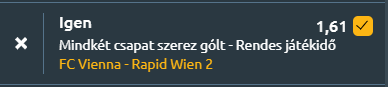 - És akkor Ausztria, ahol a First Vienna és a Rapid Wien II a Bundesliga 2-ben ad randevút egymásnak. Két támadó csapat, jó esély van a gólváltásra. Lássuk a számokat! A First Vienna az idei szezonban 4 győzelmet, 5 vereséget és 4 döntetlent könyvelt el, átlagosan 1.23 gólt szerezve és 1.08-at kapva mérkőzésenként. Az utóbbi öt találkozójukon egy győzelem, három vereség és egy döntetlen szerepel, átlagosan 1 gólt szerezve és 1.6-ot kapva. Legutóbbi mérkőzésükön 0–0-s döntetlent játszottak a WSPG Wels ellen. A Rapid Wien második csapata az idei szezonban 4 győzelemmel, 6 vereséggel és 3 döntetlennel áll, átlagosan 1.38 gólt szerezve és 1.62-t kapva meccsenként. Az utóbbi öt mérkőzésükön három győzelem és két vereség szerepel, 2 gólt szerezve és 1.2-t kapva. Legutóbbi mérkőzésükön 2–1-re győztek az Austria Klagenfurt ellen, az előző H2H találkozón pedig 1–0-ra nyertek First Vienna ellen otthon. Az adatok alapján mindkét csapat aktív a támadásban és rendszeresen betalál, így pénteken nagy valószínűséggel mindkét fél gólt szerez a mérkőzésen.
