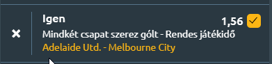 - Ausztrália a helyszín, ahol az Adelaide United fogadja Melbourne City-t, mindkét csapat a győzelem mellett a gólszerzésre is koncentrál. Az Adelaide United az idei szezonban 2 győzelmet, 2 vereséget és 0 döntetlent ért el, mérkőzésenként átlagosan 1.5 gólt szerezve és 1.25-öt kapva. Az utóbbi öt mérkőzésükön 2 győzelem és 3 vereség szerepel, átlagosan 1.6 gólt szerezve és ugyanennyit kapva. Legutóbb 2–0-ra győztek a Western Sydney Wanderers ellen, míg az elmúlt öt H2H találkozóból háromszor győztek, egyszer veszítettek és egyszer döntetlent értek el Melbourne City ellen, átlagosan 2.2 gólt szerezve. Melbourne City az idei szezonban 2 győzelemmel, 0 vereséggel és 2 döntetlennel áll, mérkőzésenként 1.75 gólt szerezve és 0.25-öt kapva. Az utóbbi öt mérkőzésükön 4 győzelem és 1 döntetlen szerepel, átlagosan 2 gólt szerezve és 0.4-t kapva, legutóbb 2–0-ra győztek a Melbourne Victory ellen. Az adatok alapján mindkét csapat rendszeresen gólt szerez, ma is nagy esély van erre!