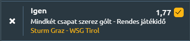 - Az osztrák bajnokságban járunk, a Sturm Graz hazai pályán fogadja a WSG Tirol csapatát. A mérkőzés kiegyenlítettnek ígérkezik, hiszen a hazaiak a második, míg a vendégek a kilencedik helyről várják az összecsapást. A Sturm Graz legutóbb 1–0-ra verte a Hartberget, és a szezonban eddig nyolc győzelmet, öt vereséget és egy döntetlent ért el, 1,64-es gólátlaggal és 1,14 kapott góllal. Az elmúlt öt mérkőzésükön azonban csak egyszer nyertek, kétszer kikaptak és kétszer döntetlent játszottak, mindössze 0,8 gólt szerezve és 1,2-t kapva átlagban. A WSG Tirol legutóbb 0–0-ra végzett az Austria Wien ellen, a szezonban négy győzelem, négy vereség és hat döntetlen a mérlegük, 1,43 szerzett és ugyanennyi kapott góllal. Az elmúlt öt találkozón egyszer nyertek, négyszer döntetlent játszottak, 1,0 gólt szerezve és 0,8-at kapva átlagban. Az egymás elleni mérleg egyértelműen a Sturm Graz felé billen, hiszen az utóbbi öt meccset mind megnyerték, 2,4-es gólátlaggal, míg a Tirol csak 0,4 gólt tudott szerezni. A Sturm Graz hazai pályán rendszerint eredményes, míg a Tirol az utóbbi hetekben stabilan pontokat gyűjtött, és képes volt gólokat szerezni. Jó esély van a gólváltásra.