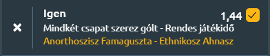 - Az Anorthosis és az Ethnikos Achnas összecsapása kiegyensúlyozott mérkőzést ígér, de a hazai csapat valamivel esélyesebb a győzelemre. Az Anorthosis jelenleg az első helyen áll a bajnokságban, és bár az idény során nem volt teljesen meggyőző. Az Ethnikos Achnas a második helyen áll, de kevés győzelmet aratott a szezonban, és idegenben sebezhetőbbnek tűnik. A vendégek ugyan stabilabb védekezéssel bírnak az elmúlt öt meccs alapján, de támadásban gyengébben teljesítenek, míg az Anorthosis átlagosan 1.41 gólt szerez meccsenként. A korábbi találkozók és a statisztikai mutatók alapján az Anorthosisnak nagyobb esélye van a győzelemre, de az Ethnikos Achnas ellenállása és minősége miatt szoros összecsapás várható. A mindkét csapat gólt szerez fogadás is reális opciónak tűnik, mivel az Anorthosis az elmúlt öt meccsén átlagosan 1.8 gólt kapott, míg az Ethnikos Achna támadójátéka képes lehet kihasználni a hazaiak védekezésbeli hibáit.