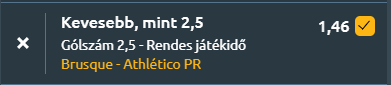 - A Brusque és Athletico PR feszül egymásnak a Copa do Brasil következő fordulójában, ahol a statisztikák alapján egy szoros, ám inkább a vendégek felé billenő összecsapás várható. A hazai Brusque remek formát mutat, az elmúlt öt meccsükön veretlenek maradtak (4 győzelem, 1 döntetlen), és kiváló védekezésük van, hiszen csupán 0.2 gólt kaptak meccsenként ebben az időszakban. Ez a tény nagyon fontos a tipp kialakításának szempontjából! A Copa do Brasil idei kiírásában eddig hibátlanul teljesítettek (2 győzelem), 2 rúgott és mindössze 0.5 kapott gólos átlaguk erős stabilitást jelez. Legutóbb az Ypiranga Erechim ellen nyertek 1–0-ra, így jó hangulatban várhatják az összecsapást, még ha papíron nem is ők az esélyesek. Az Athletico PR szintén 2/2-es mérleggel érkezik a kupában, de még a Brusquénál is eredményesebbek voltak támadásban, 2.5 gólos meccsenkénti átlaguk figyelemre méltó. Ugyanakkor az utóbbi 5 meccsükön már mutatkoztak bizonytalanságok! 3 győzelem mellett kétszer is kikaptak, és 1.2-es kapott gólátlaguk arra utal, hogy a védekezés nem mindig stabil. A legutóbbi vereségük a Novorizontino ellen 2–1-es eredménnyel zárult, ami némi sebezhetőséget jelez. Bár a Brusque kiváló formában van és hazai pályán játszik, az Athletico PR magasabb szintű játékereje, gólveszélye és kuparutinja miatt esélyesebb. A statisztikák alapján alacsony gólszámú, szoros meccs várható, ahol a vendégek kiharcolhatják a továbbjutást.