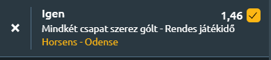 - A dán First Division egyik kulcsfontosságú mérkőzését rendezik meg, ahol a harmadik helyezett Horsens fogadja a listavezető OB Odensét. A tét óriási: mindkét csapat a feljutásért küzd, így feszült, de izgalmas meccs várható. A statisztikai mutatók egyértelműen OB fölényét jelzik, de idegenben nagyon nehéz dolga lesz. A vendégek támadójátéka hatékonyabb (2,14 rúgott gól/meccs), mint Horsensé (1,59), miközben kevesebb gólt is kapnak (1,03 vs. 1,45). Az utóbbi öt meccs formája is az odenseieknek kedvez, hiszen több gólt szereztek (átlag 2,6), és kevesebbszer kaptak ki. Bár Horsens legutóbb idegenben nyert a bajnokságban, de a hazai pályán OB ellen nincs győzelme a legutóbbi években, így mentálisan is hátrányból indulhat. Mindezek alapján egy izgalmas, nyílt játék várható, amelyben OB papíron erősebb statisztikái és kiegyensúlyozottabb szezonja miatt esélyesebb a győzelemre, még idegenben is, de mindkét oldal eséllyel betalál majd.