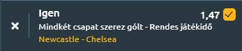 - Mindkét oldalon lehet gól, hiszen a Newcastle esetében több alapvédő hiányzik sérülés miatt, ami fokozott nyomást helyez a védelmi sorra, így Chelsea tehetséges támadói, mint Palmer és Jackson, kihasználhatják a védelem gyenge pontjait, míg a Chelsea a Konferencia Liga-mérkőzések során már bizonyította, hogy bőséges támadósorral rendelkezik, amely még a tartalékos felállásban is képes lehet kihasználni Newcastle védelmi hiányosságait. A Szarkák pedig hazai körülmények között lesznek és Howe vezetőedző hazai pályán általában erős támadójátékot vár el, így a Chelsea ellen is próbálják majd kihasználni a helyzeteket.