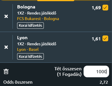 - Lyon – Basel: A Lyon idei sikereinek kulcsa a szervezettség és a védekezés stabilitása. Paulo Fonseca együttese az egyik azon három gárda közül, amely még nem kapott gólt a sorozat jelenlegi szakaszában, és már hét egymást követő mérkőzésen veretlen az Európa-liga ligaszakaszában. A francia csapat 2021–22 után most ismét közel áll ahhoz, hogy három győzelemmel nyissa a csoportkört, ami akkor öt győzelmet és egy döntetlent eredményezett. A Basel szintén remek formában érkezik Franciaországba, hiszen Ludovic Magnin csapata három egymást követő győzelemnél jár, amelyeken összesen nyolc gólt szerzett, miközben egyet sem kapott. Az Európa-liga második fordulójában korán vezetést szereztek, majd a hajrában lezárták a találkozót, ezzel visszatérve a helyes útra. Egy újabb siker idegenben nemcsak önbizalmat adna, hanem a 2023-as Európa-konferencialiga elődöntő óta az első európai idegenbeli győzelmüket is jelentené. A Lyon ugyan kisebb hullámvölgybe került a hazai bajnokságban, de az európai porondon továbbra is stabil, szervezett és fegyelmezett játék jellemzi. Paulo Fonseca együttese hazai pályán ritkán hibázik, és a Basel idegenbeli gyengeségei miatt a franciák esélyesebbnek tűnnek. A svájciak támadójátéka csak akkor lehet veszélyes, ha gyorsan megtalálják a ritmust, de Lyonban kevés terük lesz kibontakozni. Mindezek alapján várhatóan a Lyon magabiztos, kontrollált játékkal újabb három pontot gyűjt be, és megszilárdítja vezető helyét a csoportban.