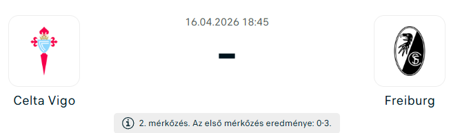 - A Celta Vigo hazai pályán képes lehet egy szoros győzelemre, hiszen idén négy európai meccset is megnyert a Balaídosban. A Freiburg azonban háromgólos előnyből érkezik, stabil formában, és összességében nem tűnik fenyegetettnek. A spanyolok megnyerhetik a visszavágót, de a továbbjutás valószínűleg a németeké marad. A tippem: