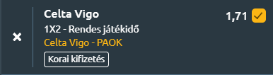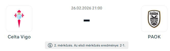 - A Celta Vigo minimális előnye, erős hazai mutatói és kiegyensúlyozottabb formája alapján jó helyzetből várja a visszavágót, míg a PAOK idegenbeli bizonytalansága döntő tényező lehet. Hazai győzelem várható!