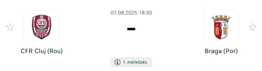 Erdély szívében, Kolozsváron csap össze a CFR Cluj és a portugál Braga az Európa Liga harmadik selejtezőkörének első mérkőzésén. Mindkét csapat hosszabbítás után jutott tovább az előző körben, és most a playoffkörbe jutásért küzdenek, ahol a Gibraltári Lincoln Red Imps vagy az örmény Noah vár majd a győztesre.