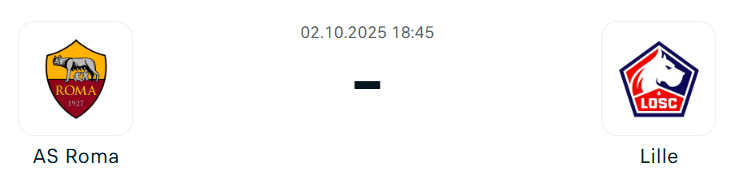 - A mérkőzés esélyese egyértelműen a Roma. Gasperini irányítása alatt a fővárosiak rendkívül stabilak hátul, hiszen alig kapnak gólt, ráadásul hazai pályán hosszú ideje veretlenek Európában. A Lille ugyan erős támadósort vonultat fel, de a sérülések és a hiányzók sora gyengíti a csapatot, miközben az utóbbi hetekben kevésbé hatékonyan játszottak. A találkozón várhatóan kevés gól születik, mivel a Róma a biztonságra épít, a Lille pedig a legutóbbi két bajnokin is akadozott támadásban. Így minden adott ahhoz, hogy a rómaiak szorosan, de megszerezzék újabb győzelmüket.