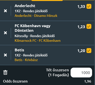 A másik két tippedet inkább rakom hendivel és már jobb a szorzó mint a három meccsből összesen.