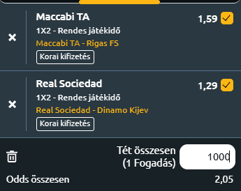 - Real Sociedad - Dinamo Kijev: A Real Sociedad felemás eredményekkel áll az Európa-ligában. Két győzelem, egy döntetlen és két vereség az eddigi mérlege. Az Ajax elleni 2-0-s hazai sikerük óta négymeccses győzelmi sorozatban vannak, és kiváló védekezést mutatnak, hiszen legutóbbi hét mérkőzésükből hatot kapott gól nélkül zártak. Céljuk, hogy csökkentsék a hátrányukat a csoport első nyolc helyezettjéhez. A Dinamo Kijev ezzel szemben eddig pont nélkül áll, és csupán egy gólt szerzett az öt mérkőzésen. Bár az ukrán bajnokságot veretlenül vezetik, nemzetközi szinten kilenc idegenbeli mérkőzés óta nem nyertek. Hátralévő három mérkőzésükön bravúrra lenne szükségük a továbbjutáshoz. A Sociedad erős védekezése és jó formája alapján várhatóan magabiztos győzelmet arat a gyengélkedő Dinamo ellen.