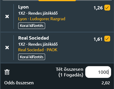 - Real Sociedad – PAOK: A Real Sociedad felemás teljesítménnyel jutott el az utolsó csoportmeccsig, de két hazai győzelmük azt mutatja, hogy a Reale Arenában erősebbek. Bár legutóbbi két mérkőzésükön vereséget szenvedtek, a Lazio ellen emberhátrányban, majd a bajnokságban egy súlyos 3-0-s vereséget Getafétől, de még mindig jó esélyük van a továbbjutásra. A PAOK ezzel szemben lendületben van, hiszen az első négy meccséből csupán egy pontot szerzett, de azóta három győzelmet arattak, és az utóbbi három tétmeccsükön gólt sem kaptak. A görög csapat azonban eddig még soha nem tudott Spanyolországban nyerni, és idegenben alapvetően is gyengébbek. A Sociedad hazai pályán esélyesebb és várhatóan nyernek is.