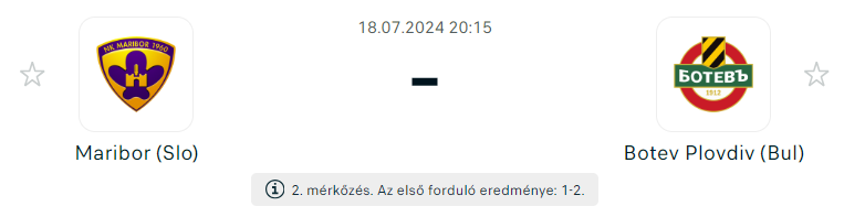 - A Maribor a szlovén PrvaLiga második helyén végzett tavaly, így szerepel az Európa Liga selejtezőjében. A csapat utoljára 2022 augusztusában játszott az Európa Ligában, ahol 3-0-s vereséget szenvedtek el a HJK ellen a harmadik selejtező körben. Két év után ismét harcba szállnak a továbbjutásért, miután szűk vereséget szenvedtek el Bulgáriában múlt héten, ami ötödik vereségüket jelenti az utolsó hét idegenbeli mérkőzésükön az UEFA versenyeken. Győzelemre van szükségük a visszavágón, azonban aggasztó számukra, hogy az utolsó nyolc európai hazai mérkőzésükből egyiket sem nyerték meg rendes játékidőben.