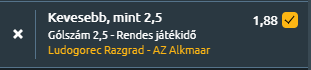 - A Ludogorets hazai pályán tapasztalható szervezett védekezése, amely a Lazio ellen is működött, és várhatóan most is nehézséget okoz majd az Alkmaar számára. Az Alkmaar ugyan képes lehet dominálni a mérkőzés egyes szakaszait, de a támadójátékuk jelenlegi formája nem garantálja a gólokat. Kevesebb, mint 2,5 találat várható.