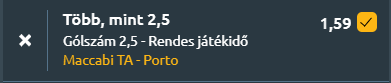 - A Maccabi Tel Aviv hazai pályán nem volt meggyőző az Európa Ligában. A bajnokságban jól szerepelnek, de a nemzetközi színtéren eddig nem tudtak igazán maradandót alkotni. Mivel már kevés esélyük van a továbbjutásra, felszabadultabban játszhatnak, ami nyíltabb mérkőzést eredményezhet. A Porto számára viszont ez egy élet-halál találkozó, hiszen jelenleg a kiesőzónában vannak, így mindenáron győzniük kell. Bár az utóbbi időben gyengébb formát mutattak, a Santa Clara elleni döntetlen során végre betaláltak, ami lendületet ad nekik. Mivel a portugál csapatnak támadnia kell a továbbjutásért, a Maccabi pedig hazai pályán biztosan próbál helyzeteket kialakítani, egy nyílt és gólgazdag mérkőzésre lehet számítani, ahol minimum három gól várható!