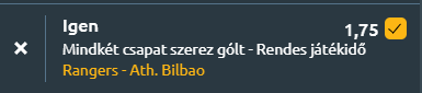 - A Rangers legutóbb vereséget szenvedett a Hibernian ellen hazai pályán, és sorozatban öt hazai tétmeccsét is elveszítette rendes játékidőben, ám márciusban parádés hónapot zárt: drámai tizenegyespárbajban búcsúztatták Mourinho Fenerbahcéját, majd rangadót nyertek a Celtic ellen, és egy hihetetlen fordítással győzték le idegenben a Dundee-t is 4-3-ra. Bár formájuk ingadozó, különösen hazai környezetben, az Ibrox stadionban mégis képesek lehetnek egy újabb emlékezetes európai estére. Az Athletic Bilbao stabilabb periódusban van, hiszen a Roma elleni fordítás után veretlenek maradtak öt tétmeccsen keresztül, bár legutóbb két gól nélküli döntetlent is játszottak a spanyol bajnokságban. A Bilbao ugyan ritkán látogat Skóciába, de történelmi emlékei nem kedvezőek: eddigi két látogatását vereséggel zárta, köztük egy 4-1-es zakóval épp a Rangers ellen. Mivel ez egy első mérkőzés, elméletileg óvatos kezdés is várható, azonban a statisztikák mást jeleznek: a Rangers 10 Európa-liga meccséből haton legalább három gól született, míg a Bilbao legutóbbi négy európai meccsén szintén rendre 3+ gól esett (összesen nyolcat rúgtak és nyolcat kaptak). Mindezek alapján jó esély van rá, hogy mindkét csapat betalál majd!