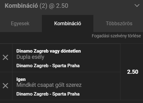 Ez a rovatom a Fogadáskészítő segítségével készült el. Az adott mérkőzést kielemezve 2-3 szempontból összeállított tippet küldök játékba, amelynek szorzója minden esetben a duplázó körüli értéket közelíti, de mégis jó esélyekkel indul! A Dinamo Zagreb csütörtök este a Stadion Maksimirban fogadja a Sparta Prágát az Európa Liga rájátszásának első mérkőzésén.