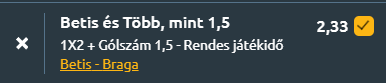 - Összességében a Braga formája jobb és meggyőzőbb, de van egy Betis a bajnokságban és egy másik az Európa-ligában. Úgy tűnik, jobban élvezi a reflektorfényes kontinentális estéket az andalúz alakulat, amely magasan képzett csapatnak számít a második számú európai kupasorozatban, és minőségibb, mint a portugál gárda. A spanyoloknak ráadásul nincs annyi kulcsfontosságú hiányzójuk, mint ellenfelüknek, amely a védekezés és a középpályás építkezés terén is bajban lehet emiatt. Manuel Pellegrini legénysége jól szerepel ebben a sorozatban, pláne hazai pályán, hiszen az elmúlt 4 mérkőzését megnyerte az Estadio de la Cartujában, ahol rendre szerzett legalább 2 gólt. Most is ezt várjuk, és úgy véljük, hogy a Betis a rendes játékidőben legyőzi az idegenbeli mérkőzésein újabban visszafogottan teljesítő luzitán riválisát.