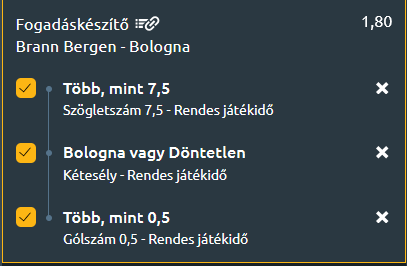 - A Brann mérkőzésein rendre sok korner volt, ez adta tippünk első részét. Aztán nem gondoljuk, hogy a Bologna kikapna, és elnézve a két alakulat gólkülönbségét, egy találattal is kalkuláunk!