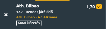 Egy Single Value Tipp következik, vagyis a sportfogadásban egy olyan értékelhető szorzó, amely single játékba küldés esetén is értéket hordoz magában! Az Athletic Bilbao több mint hat év után először rendez európai mérkőzést a San Mamesben, amikor az AZ Alkmaart fogadja az Európa Ligában!