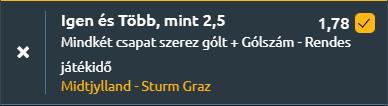 Egy Single Value Tipp következik, vagyis a sportfogadásban egy olyan értékelhető szorzó, amely single játékba küldés esetén is értéket hordoz magában! Az FC Midtjylland és a Sturm Graz összecsapásával megkezdődik az Európa Liga ligafázisa Dániában is. A hazaiak három selejtezőkört sikerrel megvívva jutottak el idáig, míg az osztrák bajnok a Bajnokok Ligája playoffkörében maradt alul, így az Európa-ligában folytathatja.