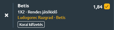 Egy Single Value Tipp következik, vagyis a sportfogadásban egy olyan értékelhető szorzó, amely single játékba küldés esetén is értéket hordoz magában! Az Európa Liga második fordulójában a bolgár Ludogorec Razgrad és a spanyol Real Betis csap össze a bulgáriai Razgradban. A hazaiak győzelemmel kezdték a csoportkört, míg a vendégek egy fordulatos döntetlent játszottak.